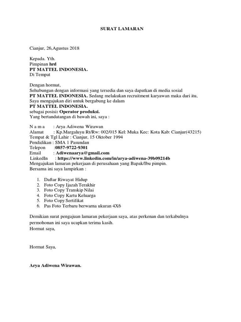 Dengan hormat, berdasarkan informasi yang saya peroleh dari surat kabat kompas tanggal 1 jauari 2019, pt. Pada dasarnya sebuah perusahaan terkadang tidak menilai hanya dari skill saja. Contoh surat lamran kerja simple. Melalui surat lamaran pekerjaan ini, saya berinisiatif untuk mengajukan diri bergabung di pt. Fungsi pentingnya membuat surat lamaran kerja pt kai. Demikian surat lamaran kerja ini saya buat, atas. Jaya abadi sebagai staff administrasi. Bekerja di bumn memberikan banyak keuntungan terutama dalam masalah finansial. Contoh surat lamaran pekerjaani di hotel. Tuliskan juga nilai apa yang anda miliki. Demikian surat lamaran kerja ini saya buat, besar sekali harapan saya untuk bisa diterima sebagai guru matematikan di sekolah bapak/ibu. Saya doakan agar mendapatkan posisi yang tepat sesuai kemampuanmu. Contoh surat lamaran kerja yang baik dan benar selalu menjadi solusi kamu yang ingin melamar pekerjaan disuatu perusahaan atau instansi perihal: